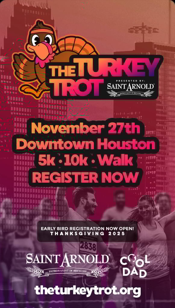 Updated Oct 26, 2025 • Verified today The Turkey Trot ???????? — Downtown Houston Thanksgiving morning tradition with 10K, 5K & 1-Mile Walk—skyline views, packet…