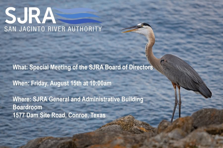 The San Jacinto River Authority (SJRA) Board of Directors has scheduled a special meeting for Friday, August 15th, at 10:00 AM, which will be available both in person and via live stream. Additional details can be found on…facebook.com
