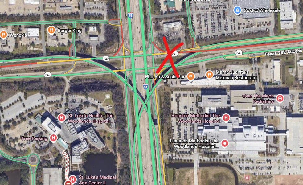 Traffic Alert: Accident on Hwy 242 Westbound Near I-45 Interchange
